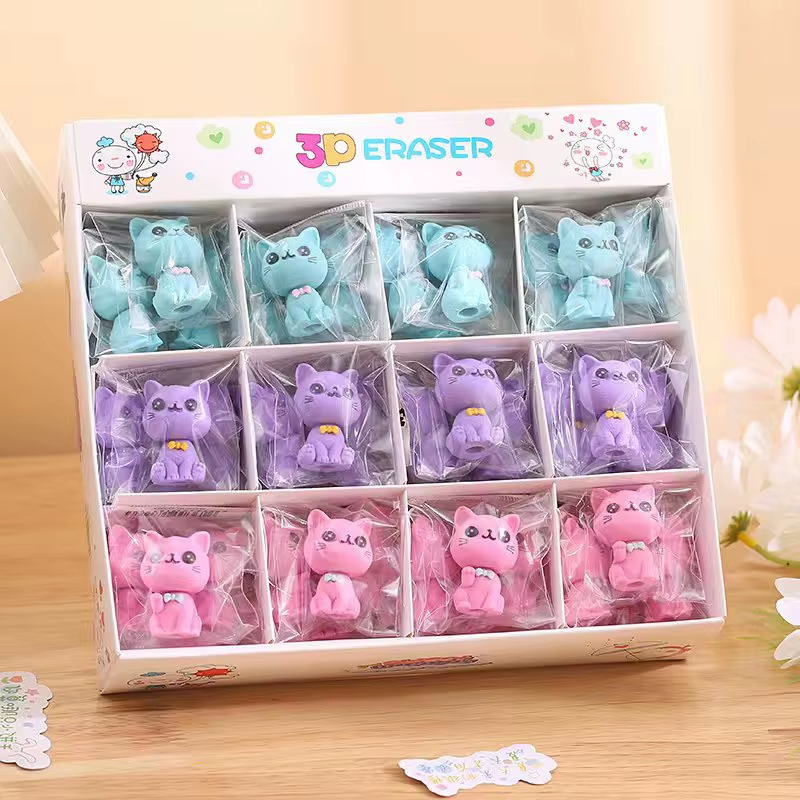 Estas gomas no solo eliminan errores, ¡también roban corazones! Con un diseño de gatitos en colores vibrantes, son perfectas para darle un toque de ternura a tu escritorio o estuche. Ideal para estudiantes, artistas y amantes de los gatos que buscan hacer su rutina más divertida y colorida. Además, ¡puedes usarlas como mini figuras para decorar!